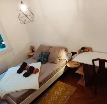 Notre spacieux appartement est idéalement équipé pour accueillir jusqu'à 7 personnes, offrant un espace généreux comprenant une vraie cuisine entièrement équipée, une salle à manger chaleureuse et une salle de bain moderne. Profitez du confort de la vie urbaine dans un cadre naturel et relaxant.